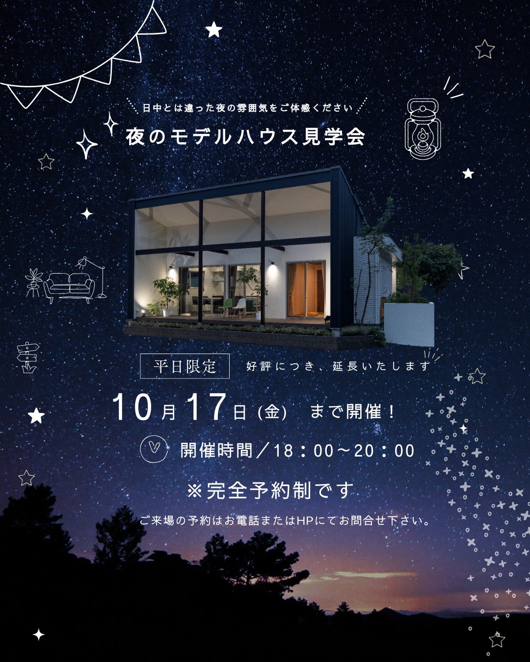 9/19㈮までの期間限定で開催していた「夜間のモデルハウス見学会」ですが、10/17㈮まで延長決定しました!