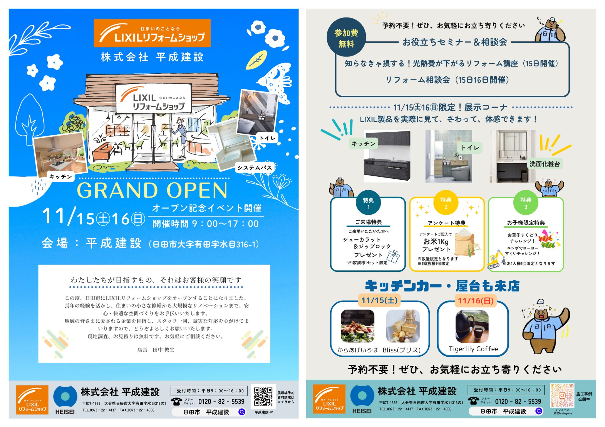 オープンを記念しまして、11月15日、16日にイベントを開催します。